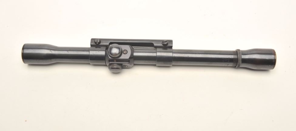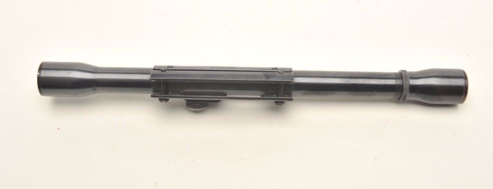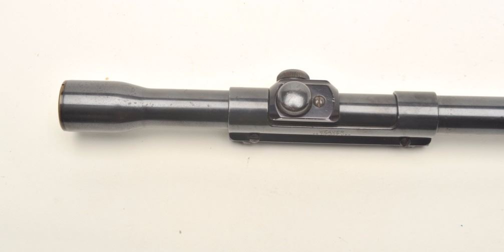 Weaver tip off J4 model scope with 22 mount; post reticule; good optics. Est.: $50-$100.
