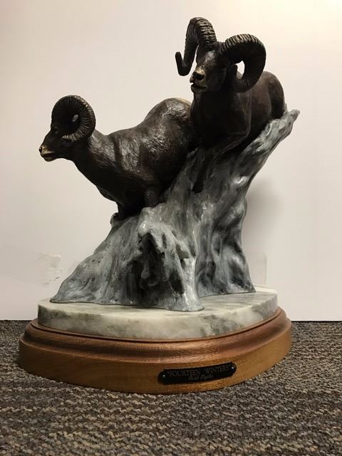 Dale and Donna Gaugler have donated a Rick Taylor bronze titled “14 Winters”. This is one of Rick Taylor’s favorite pieces that he has ever created and depicts two 14-year old Big Horn Rams coming down the mountain in the snow. This piece is #20 out of 48 that was sold out. Thank you, Dale and Donna Gaugler for this wonderful 100% donation.