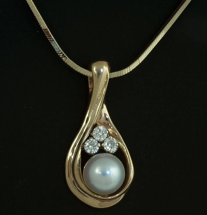 Erwin Diamond Company has donated this 14kt yellow gold pendant which contains one round 8mm high lustrous AAA quality cultured pearl, and 3 spectacularly brilliant Erwin IDEAL-cut diamonds with total diamond weight of one quarter caret. Pendant glimmers and shimmers on an 18-inch 1.5mm solid yellow gold high polished octagonal necklace with lobster claw clasp. Online bidder is responsible for all shipping costs. VALUE: $1,375 | chris@erwindiamond.com