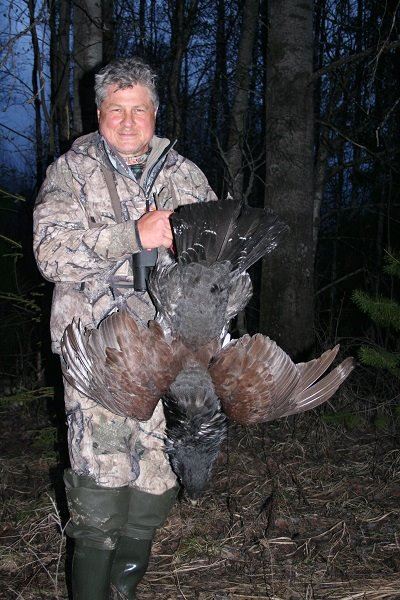 This is a 7-day and 7-night Brown Bear hunt for 2 hunters. Average trophies are seven feet, with the exceptional eight-foot bear taken occasionally. These hunts are very high success. The Hunt is conducted from blinds that were pre-baited during the fall and early winter of 2016 before hibernation, to ensure that the bears will return to the bait after coming out of hibernation in the spring, assuring active blinds for the hunters. When not hunting bear, hunters will have the opportunity to hunt Caprercaillies and Black Grouse. The Caprercaillies and Black Grouse are highly sought-after trophies, and the way in which they hunt these birds are truly unique and will offer a once-in-a-lifetime experience!