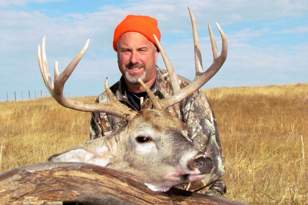 To have trophy whitetail bucks you must have genetics, nutrition, habitat, proper age structure, limited hunting and selective harvest. We have all of these features – developed over 22 years of quality deer management and outfitting – on our private ranch which makes for some of the best fair chase deer hunting to be found in North America. Sightings of 10 - 25 deer daily along with 5-10 bucks in your hunting area will keep your adrenaline level high! Arrival & departure point is Burke, SD. NOTE: Application deadline for the SD West River Special Buck tag is April 14th. If unsuccessful in drawing a tag for 2017, hunt can be deferred until 2018 with 100% chance of tag with the purchase of a $10 West River Deer preference point in 2017. Tag is good for any days in the season and for either a Whitetail or (if seen and OK'd by guide) a Mule Deer buck. 140” B& C min. Whitetail harvest standard ($500 fee for harvesting a smaller Whitetail). INCLUDED: Guide (2x1), Comfortable Fully Enclosed Tower Blind Stands, Trophy Pictures and Field Preparation, Ranch House Accommodation, Family-style Meals, Soft drinks, and Coyotes. NOT INCLUDED: SD Hunting License, Special Buck Tag ($565 plus $10 preference point fee for a 2018 tag), Sioux Falls SD airport pickup ($400 R/T, or get own rental car), Trophy Skinning, Taxidermy, Meat Processing, Tips for guides and camp cook. UPGRADES: Extra hunters at standard rate ($4,250 ea); Fall Merriam's Turkey ($500 trophy fee plus $90 SD tag). Extra hunt days can be added in 2nd deer camp only at cost of $700 per day/hunter. DATES: Exact hunting dates to be set by the SD GF& P in May. 2017 release dates likely to be between Nov. 4th - 7th and Nov. 11th - 26th. Two deer camps of 4-6 hunters will be hosted during that period (arrive Friday afternoon, hunt Saturday – Tuesday, depart early Wednesday morning).