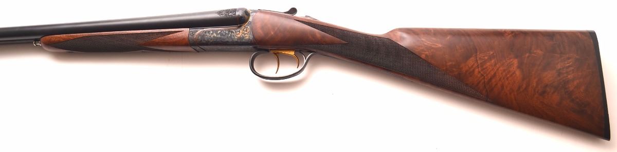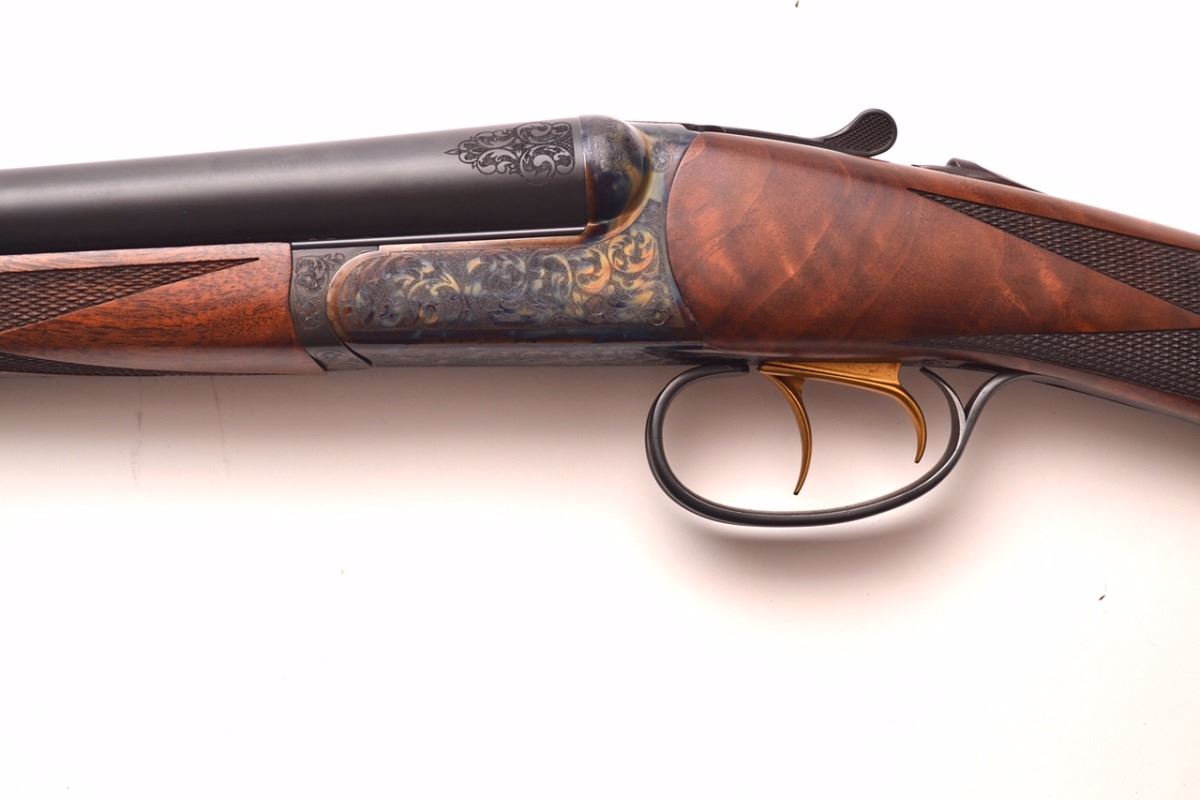 RBL 20 Side-by-Side Shotgun – 20 gauge, 28” barrels with hidden chokes, beautiful 3X American black walnut straight grip stock, splinter forend, hard rubbber buttplate, gold double triggers, solid game rib, automatic ejectors, automatic safety, and ornamental scroll engraving. 100% brand new and unfired. Awesome upland or sporting clays gun for the discriminating shooter. Weight: 6 lbs. Stock Dimensions: 14- 3/4” X 1- 1/4” ” X 2”