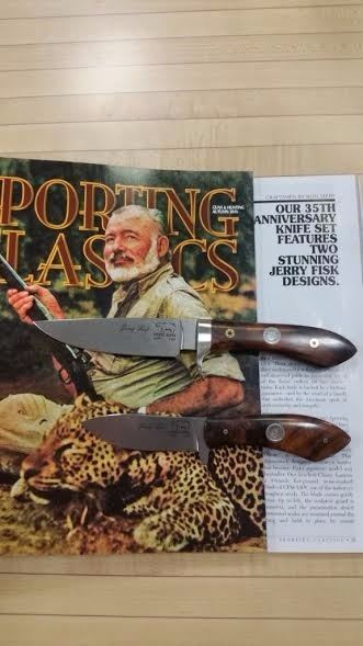 Sporting Classics Knife of the Year, 35th Anniversary, two knife set, matching serial numbers (only 75 of each model made). Includes 2 Jerry Fisk designs: Sendero Classic and Sendero Pack, both with handles of desert ironwood.