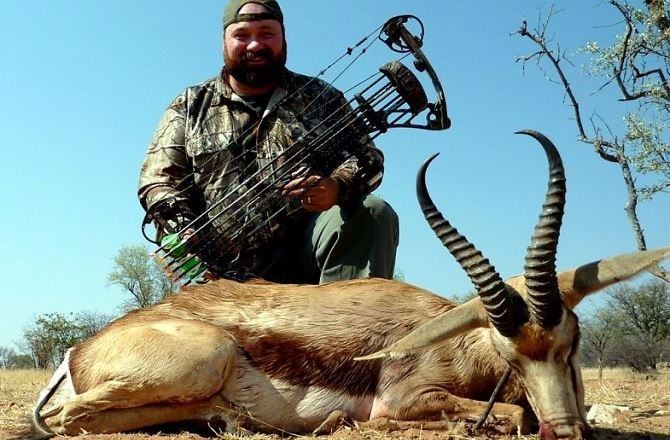 This is a 2x1 guided 7-day (+2 days arrival and departure travel + 1 day sightseeing) African Plains Game Rifle or Bowhunt Safari for two hunters with Roger Coomber of Vieranas Bowhunting Safaris during the 2017 season. Method of take is rifle or bow, crossbows are not legal in Namibia. Take advantage of this unique opportunity for true fair chase hunting for wild African animals. Included are all daily rates, meals, lodging, ground transportation during the hunt, and [$2,000 in trophy fees to be shared between the hunters]. The hunt will take place on the 21,781 acres. Accommodations will be in beautiful & remote surroundings, en-suite wash & toilet facilities, and a full accompaniment of staff. Very reasonably priced upgrades are available as per the current year’s price list (ex. Kudu $1,650, Hartebeest $850, Gemsbok $780, Springbok $680, Eland $1,800, Giraffe $1,600, Hartman Zebra $1,000 and 1x1 upgrade only $230 per hunter/day). Additional costs are round trip transportation from Windhoek, Namibia to camp (approximately $400), accommodations before and after the hunt, and dipping/packing/shipping of trophies. Non-hunters can be added for an additional $180 per night. Just ask Chip and Karen Johnson, Mark Robinson, or Brian Vanderhoof about their experience with this outstanding safari company. We thank Vieranas Bowhunting Safaris for this 100% repeat donation.