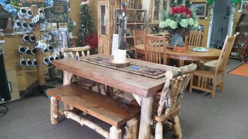 We also design custom furniture. Our wood furniture is Michigan made. We carry Home decor items, jewelry, custom framing and matting of select Outdoor themed prints and other gift items. Please check our website for a small sampling of items we carry. Open Tuesday thru Friday 10 am to 6 pm Saturday 10 am to 4pm. Closed on Sunday and Monday.