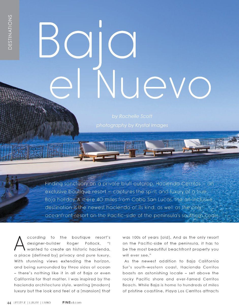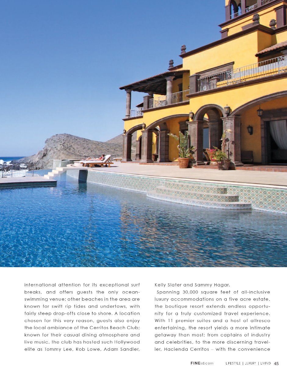 The Hacienda Cerritos was voted ‘Best Boutique Hotel’ in Los Cabo’s Magazine 2011, ‘Top Luxury Resort’ in Baja Traveler Magazine 2014, and was featured on the front cover of Fine Magazine’s February 2015 issue.