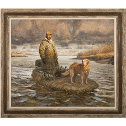 In Dick & Dutch, a double portrait of sorts, Bob Abbett shows why he is considered one of the greats of American sporting art. Keen anticipation and joy, as well as a kind of pride seems to swell in both the hunter and his dog as they head out into the dawn of a dark, ducky sort of day. The chop on the water and the imminent winter clouds are the tell that lets you know that the wind will drive the birds in and down.