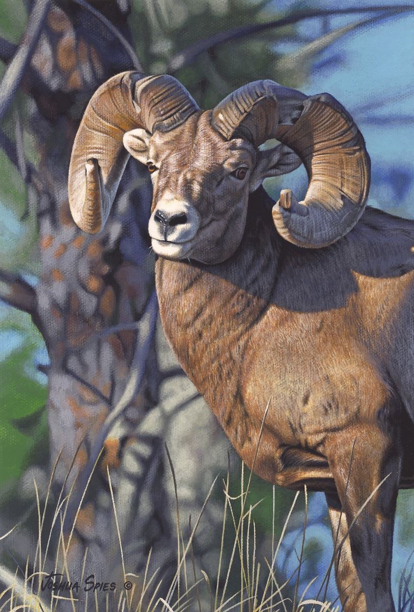 From the original painting of the same name the bighorn depicted in this gilcee symbolizes