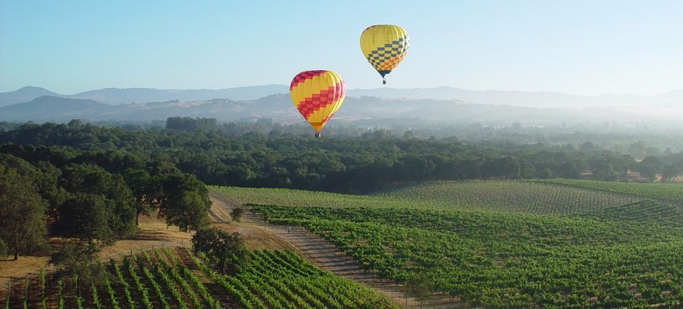 • Hot Air Balloon ride for 2 over Napa Valley, including Champagne breakfast