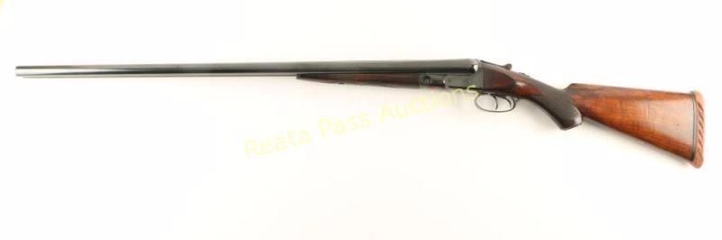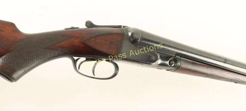 Refinished high quality side-by-side double barrel shotgun chambered for 2 3/4" 12 gauge shells, circa 1922. Features a fully blued refinish, Vulcan steel 30" barrels with solid concave matte rib, automatic ejectors, silver bead front sight, border engraved #1 frame, double triggers, sliding tang safety, checkered top lever, fancy checkered walnut splinter forend and pistol grip shoulder stock with factory grip cap, shield escutcheon, collapsed recoil pad & 14" LOP. The shotgun exhibits approximately 90% of it's blued refinish showing some light scattered wear and a few areas of pitting under the forend. Action is sound, bores appear excellent but have a small amount of what looks like debris and wood stocks are good with an old repair to the forend, a likely refinish & moderate blemishes. Condition is good to very good as refinished. ***C&R Firearm*** ***Modern Firearm***