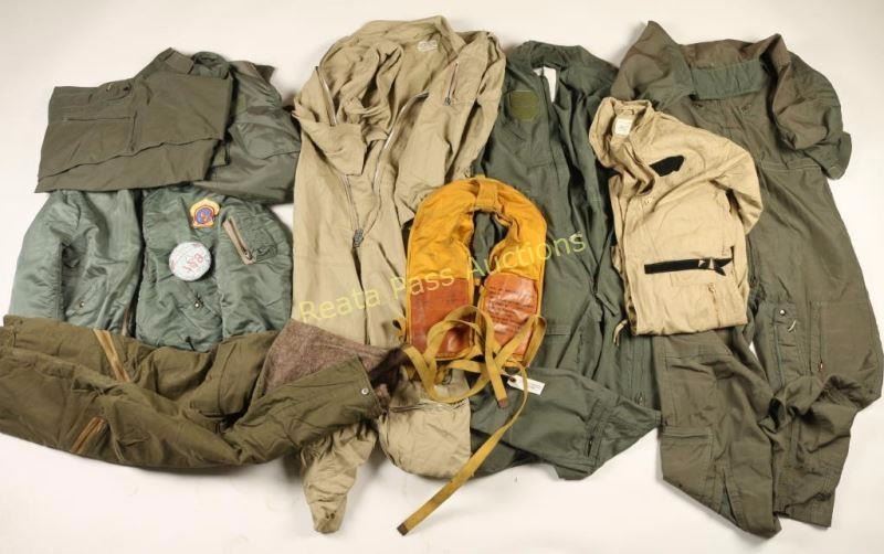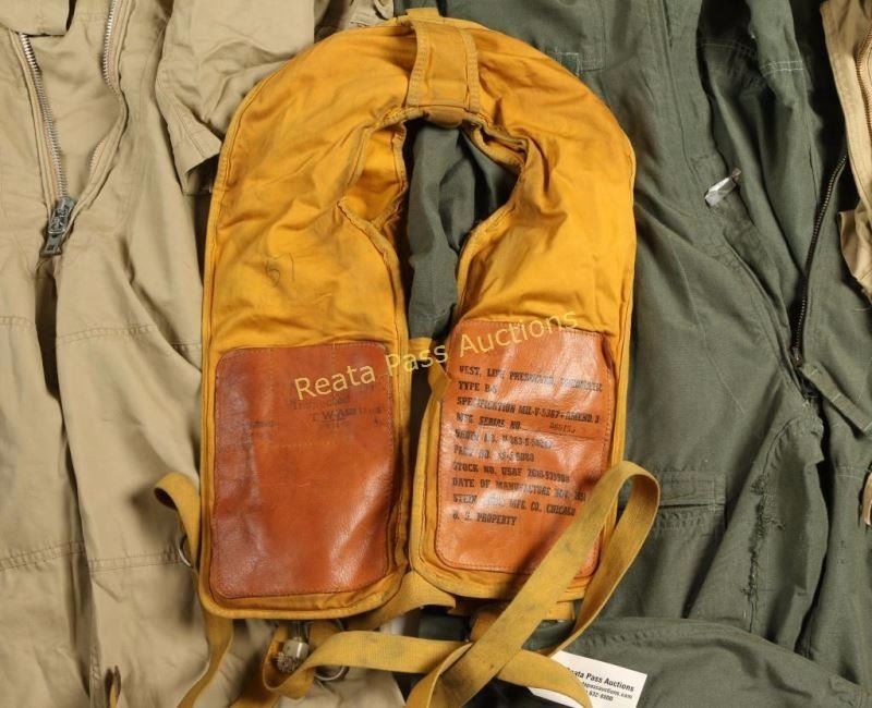 Flight suits, jackets and more. Including 1951 pilot's preserver-"Mae West".