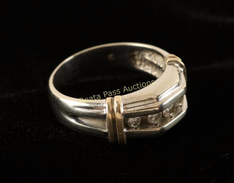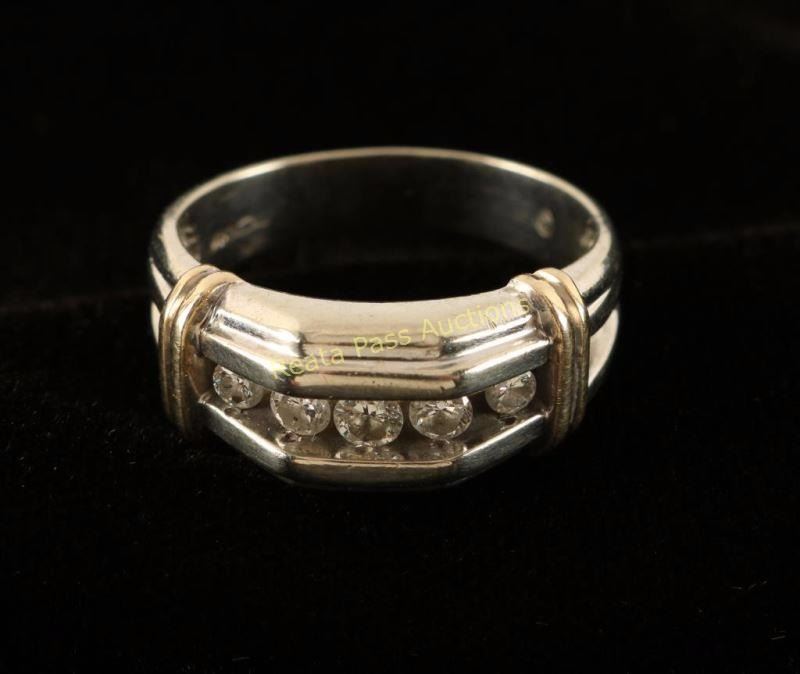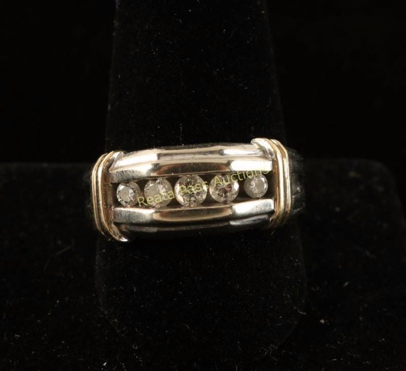 2 Carat total weight diamond five stone angular band in two tone 10K gold. Very nice masculine ring.
