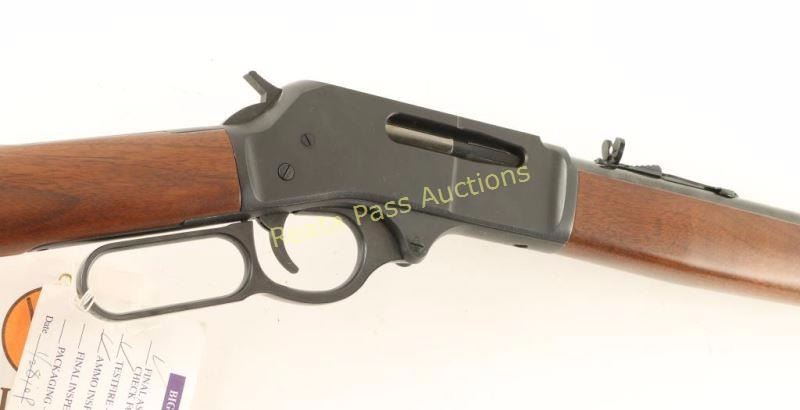 SN: TT002355 American made lever-action repeating rifle chambered in .30-30 Winchester. Features a high polished & matte blued finish, 20" heavy barrel, full tube magazine, blade front sight with gold bead, adjustable semi-buckhorn rear sight, drilled & tapped receiver, smooth trigger, serrated hammer, smooth American Walnut forend and straight grip shoulder stock with factory buttplate. Includes the original cardboard box with documents. Rifle exhibits approximately 99% of it's original finish showing only a few light scratches on the lower tang. Action is smooth, bore is pristine and wood stocks are fine. Condition is like new in box. ***Modern Firearm***