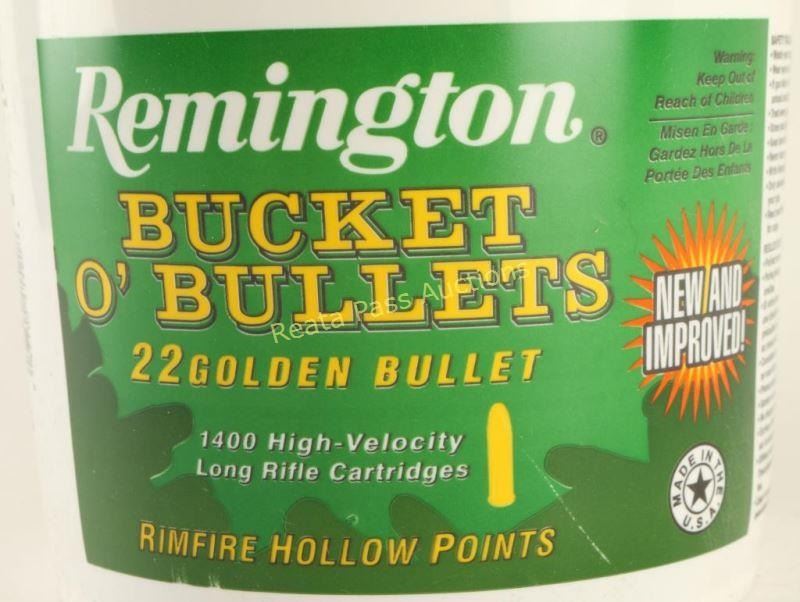 Golden bullets, 1400 rounds high velocity LR, Rimfire HP. In unopened plastic bucket.