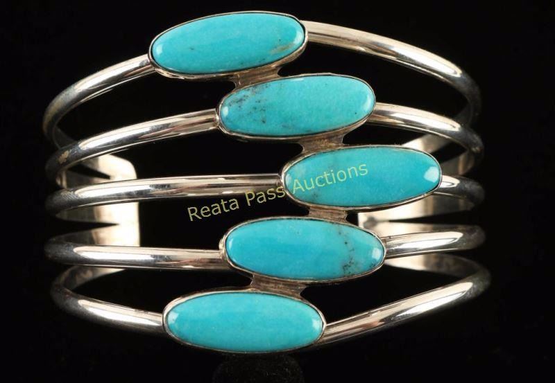 Lot 249 Navajo W. Denetdale Sterling & Turquoise Cuff