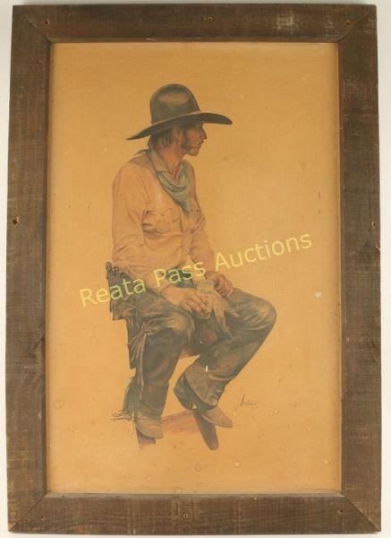 "Good Times" 23 1/4"x181/4" in rustic barnwood frame. Some staining and small losses to print.
