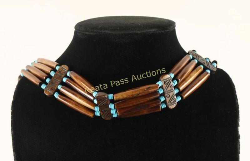 Lot 426 Navajo Turquoise Heishi Bone Choker