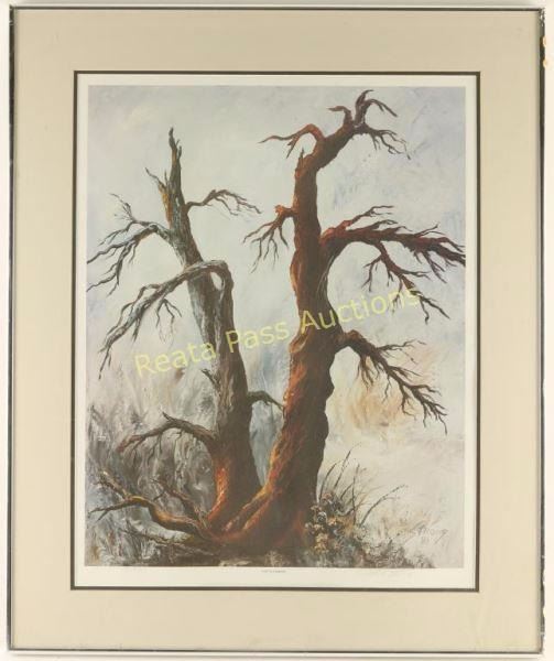 "The Oldtimers" depicting two bare twisted trees. 32/950 and signed lower right. In double mat with silver metal frame. Image measures 17 1/2"x22 1/2".