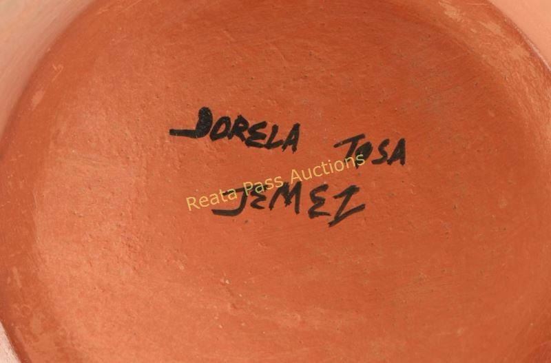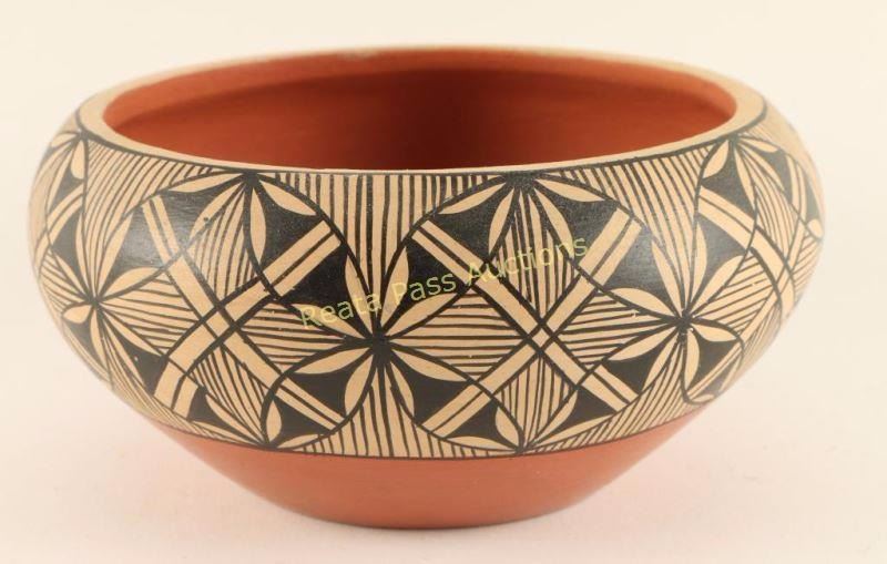 Floral motif in wide band across top of pot. Measures 3"h x 5 3/4"dia. Good condition.