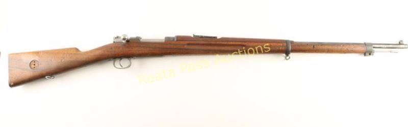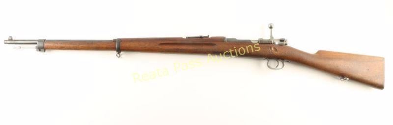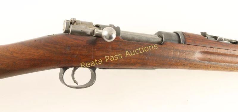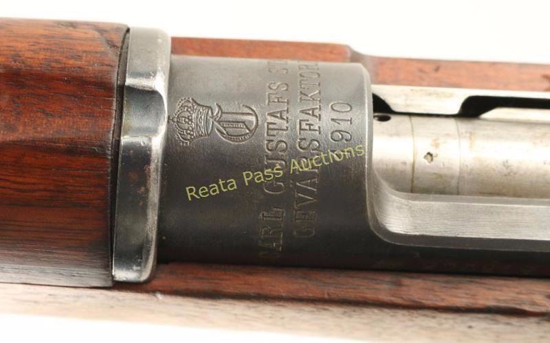 Swedish military bolt action service rifle chambered in 6.5x55mm Swedish, circa 1910. Imported by CDI of Swan. VT with import marks on the barrel. Features a blued finish, 29" barrel, blade front sight, graduated rear sight to 2,000 meters, bayonet lug, cleaning rod, sling swivels, polished bolt, integral box magazine, straight bolt handle, manual safety, smooth wood handguard and straight grip full length shoulder stock smooth metal buttplate(missing marking disc). Serial numbers match on receiver, barrel bands, rear sight parts, floorplate, bolt release & buttplate. Approximately 70% finish is retained overall with the majority of the blued surfaces thinning to a matte appearance. The barrel shows two small spots of heavy cleaning to the right of the cleaning rod and the first barrel band shows some surface rust & light pitting. Action is smooth, bore is pristine and wood stocks are good with numerous dings & some gouges. Condition is good to very good. ***Modern Firearm*** ***C&R Firearm***