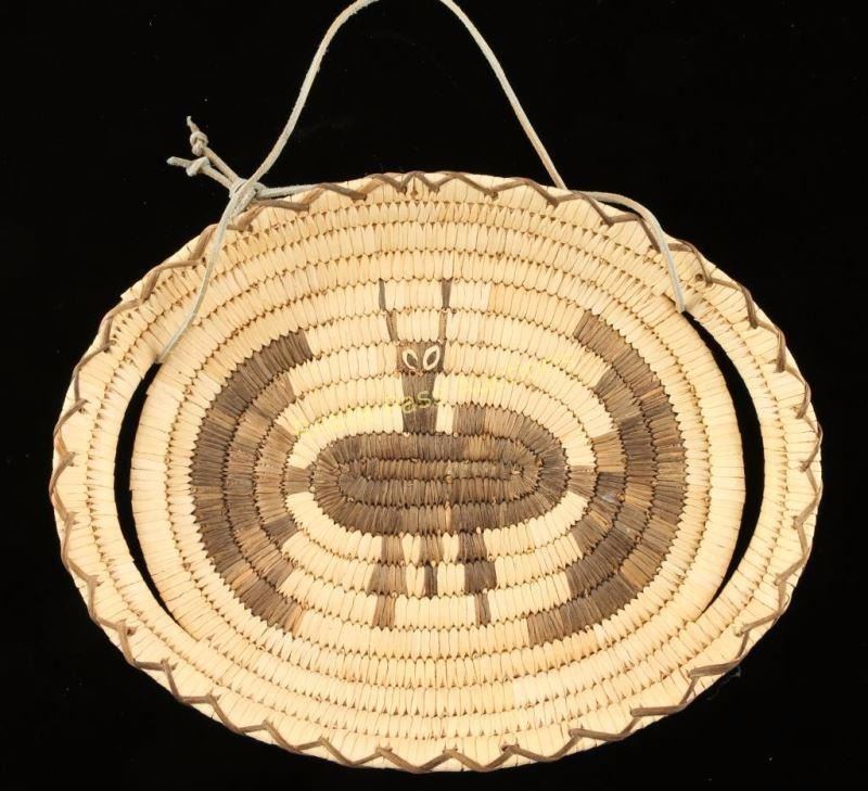 Turkey effigy in center with open sides for handles. Good condition. Measures 11 1/2"x9".