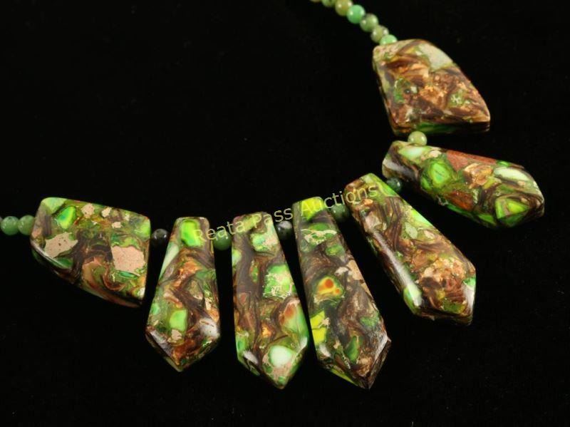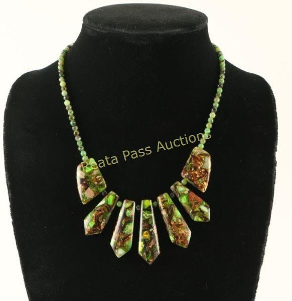 Lot 656 Green Turquoise Bronze Infused Navajo Necklace