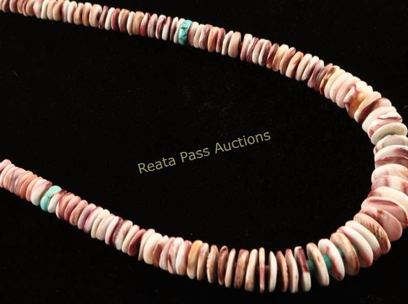 Lot 669 Native American Spiny Oyster & Turquoise Necklace