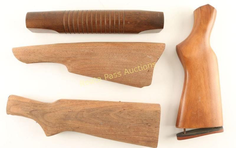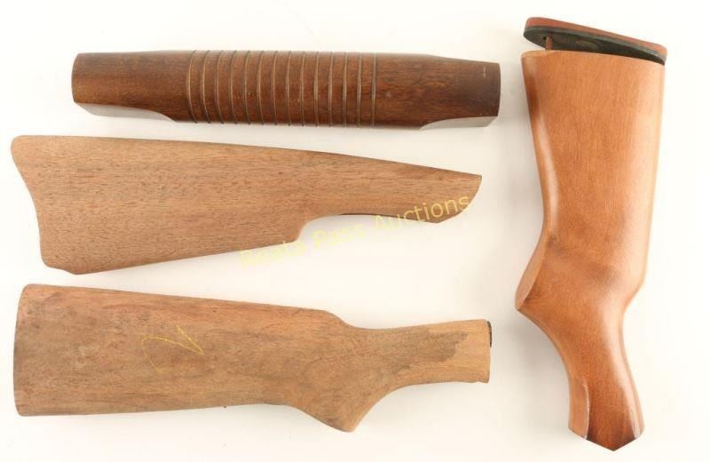3 Wooden stocks, one with a WIN rubber butt pad and a wooden forend for a WIN model 12.