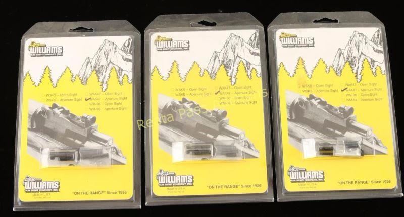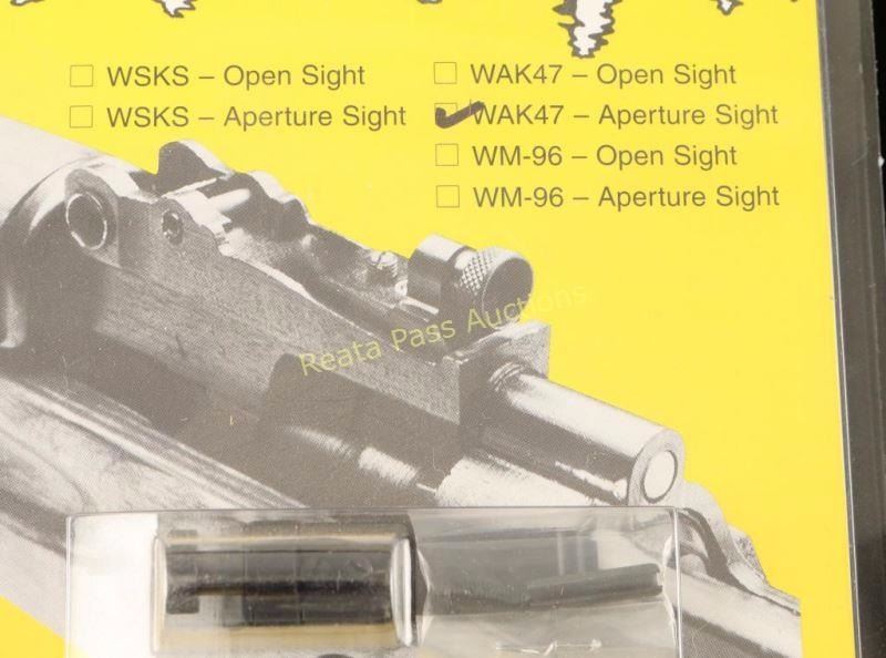 Three Williams Gun Sight Company WAK47-Aperture Sights new in the package. This sight mounts to the rear sight base and replaces the tangent sight.