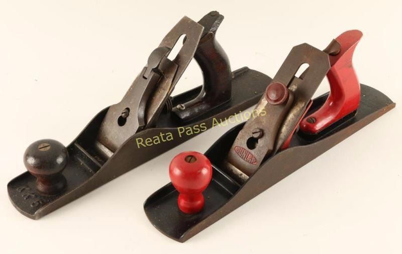 1 Dunlap, the other unmarked. All metal construction with wood handles. Measure 13" long.
