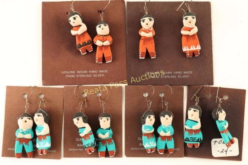 Handmade clay figures, some are marked made by Gary Tenorio, One earring is missing wire hanger, otherwise completely in good condition.