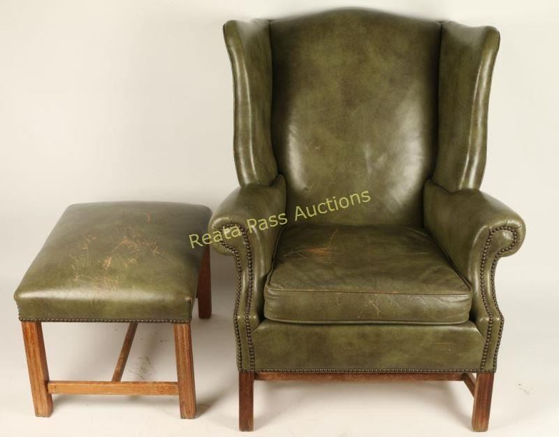 Lot 895 Vintage Wingback Chair & Ottoman