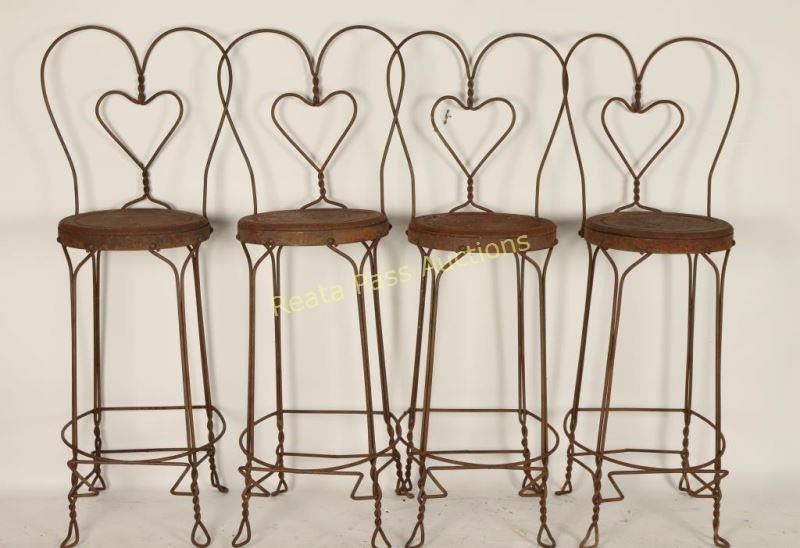 Lot 967 Collection of 4 Heart Back Bar Stools