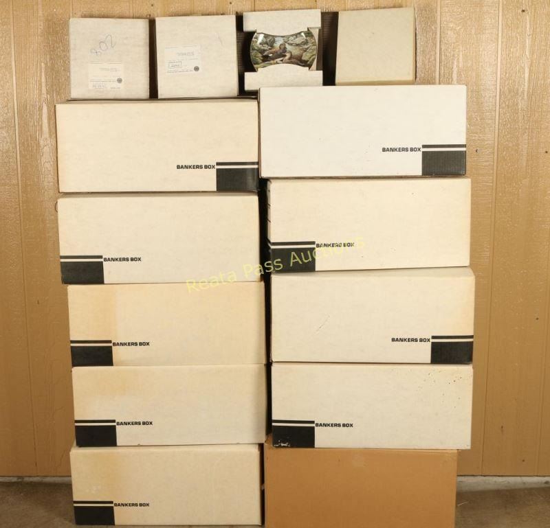 Including; waterfowl, game birds, hunting dogs, woodland wildlife, jungle cats and more-all in boxes. Also includes a box of wooden plate frames.