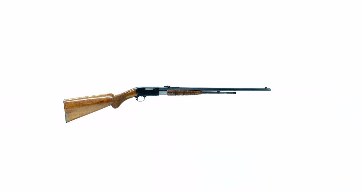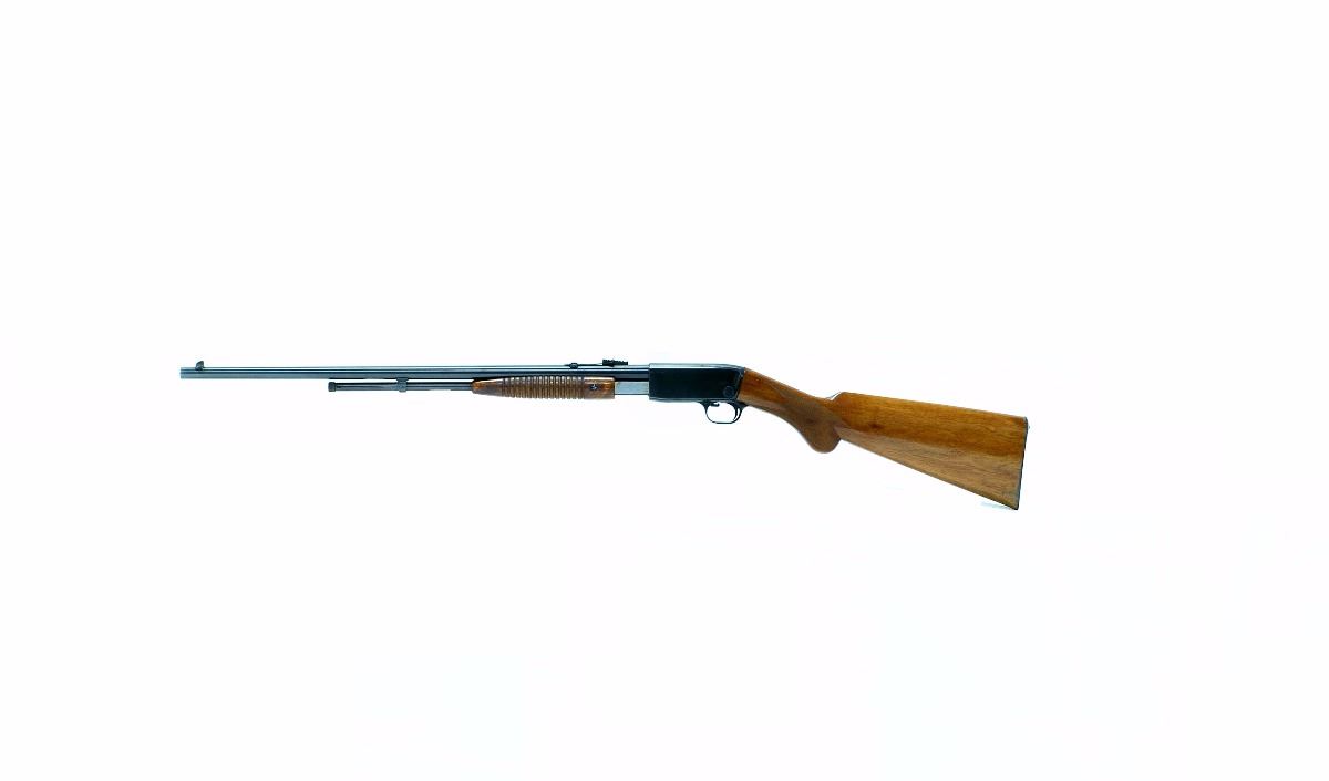 Cal.22 SR/L/LR Pump action. 22” Barrel, adjustable sights. Bore good. Overall good condition. Made in Belgium.Condition: 7.5/10,S/N: 95XXX
