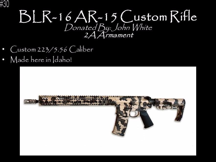 Boise Manufactured Custom AR-15 Platform by 2A –Armament. This is Absolutely NOT your standard AR, but 2A Armaments custom model BLR-16 with a KUIU stock designed and built here in Idaho. The lightest Ar-15 on the market at 4 lbs. 13 oz. 90% of the parts are manufactured here in Boise with a 7075 Billet Aluminum receiver set, titanium compensator, gas block, takedown pins. The handguard is 6061 aluminum, belt carrier group, mag catch assembly and light weight 16” barrel. This is an outstanding weapon and ideal for varmint hunting. Donated by John White 2A Armaments, Boise.