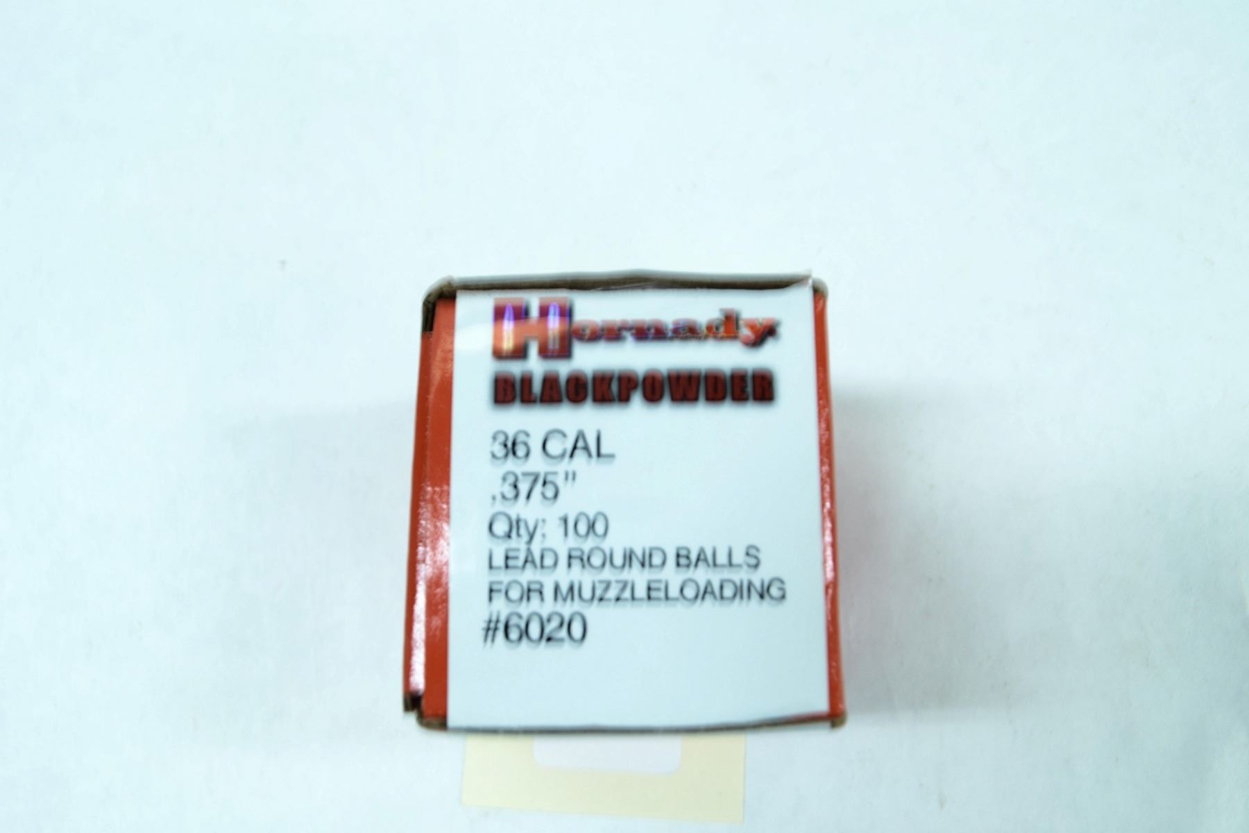 Lot 162 1 BOX 100 HORNADY .36CAL BLACK POWDER LEAD BALLS