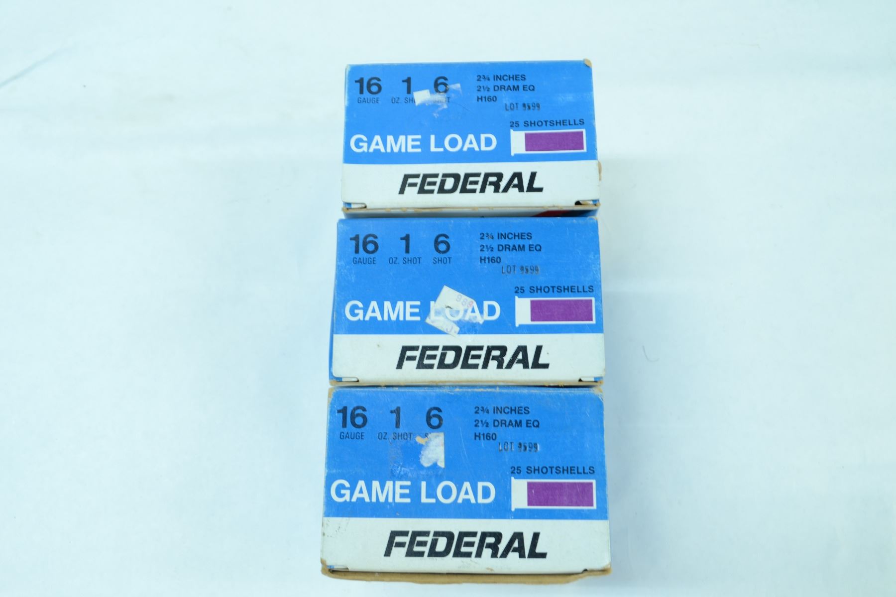 Lot 180 3 BOXES 25 ROUNDS FEDERAL 16GA 2 3/4”6 SHOT