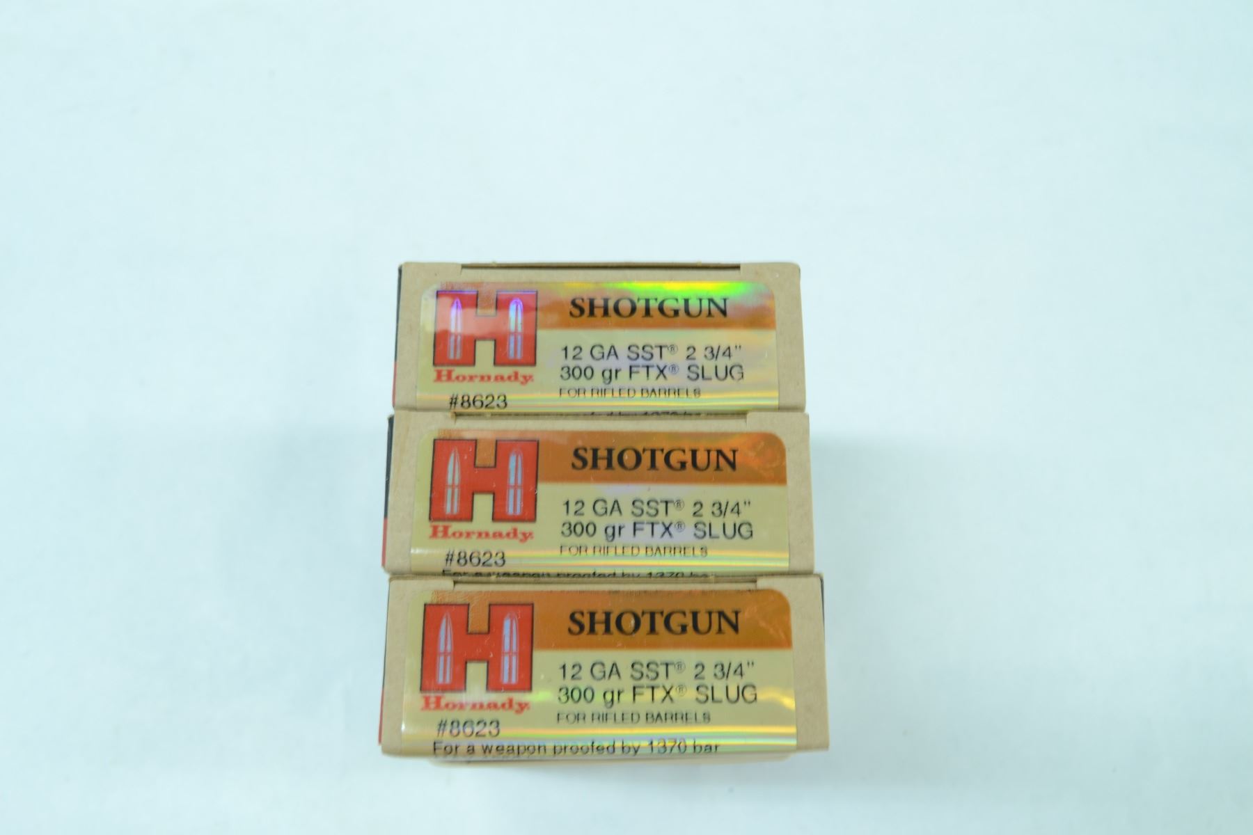 Lot 187 3 BOXES 5 ROUNDS HORNADY 12GA 2 3/4” 300GR FTX SLUG