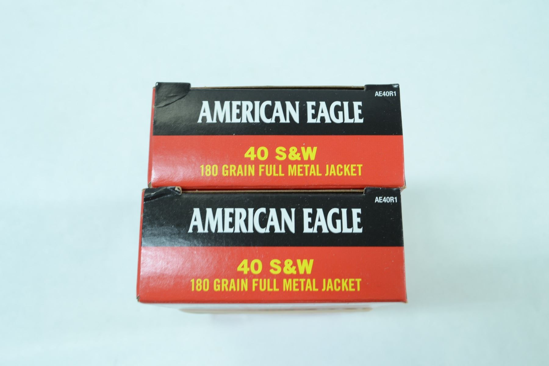 Lot 196 2 BOXES 50 ROUNDS AMERICAN EAGLE .40 S&W 180GR FMJ