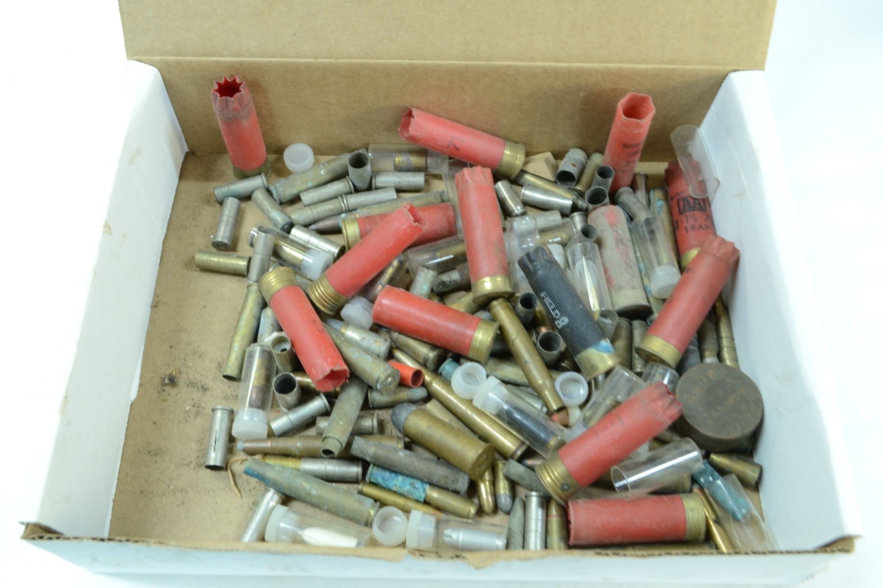Lot 238 BOX OF MIXED AMMO AND BRASS