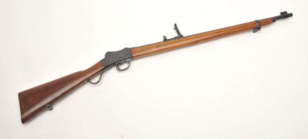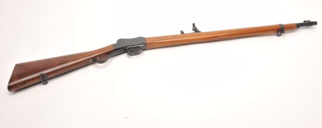 BSA single shot rifle marked “Commonwealth of Australia” on right side of receiver, .32-20 caliber, 25” barrel, blued finish, wood stock, S/N X227. This rifle is in overall very good to near fine condition displayingthe majority of its original finish, very good bore, crisp action, sharp markings and very good wood stocks. (C&R/PPT). Est.: $350-$500.