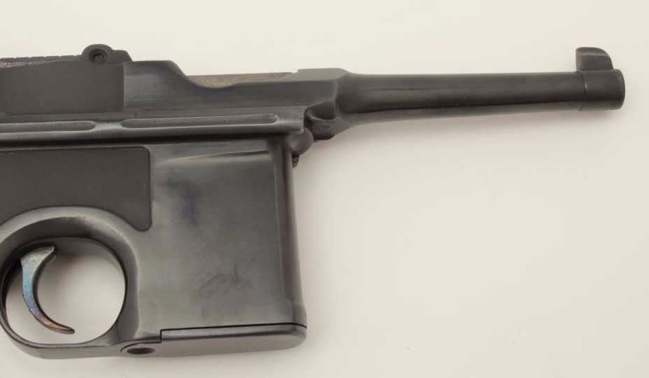 Lot 14 Mauser Model C96 “bolo” semi-automatic pistol, 9mm caliber, 4” barrel, re-blued finish, wood grips
