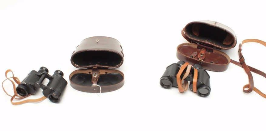 Lot 25c Lot of 2 binoculars as described: 1. Huet Paris marked 6x30 1935 date in case. Almost fine. 2. Hens