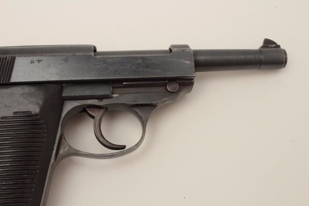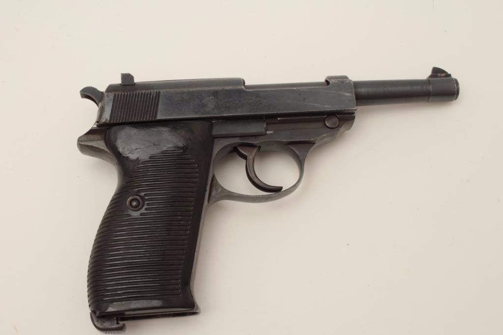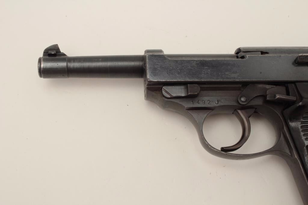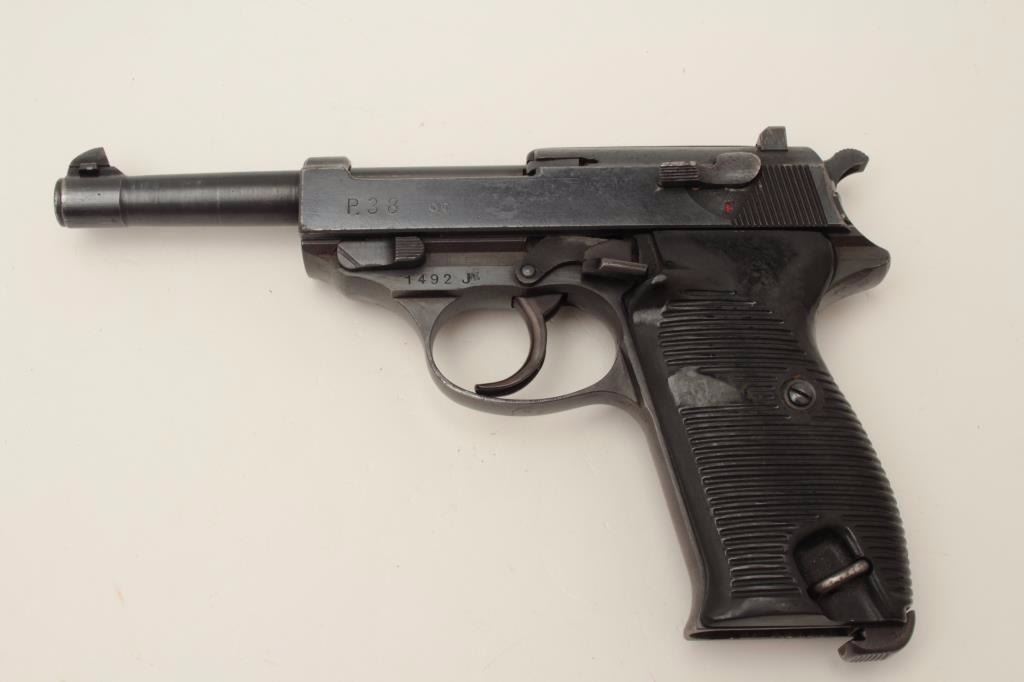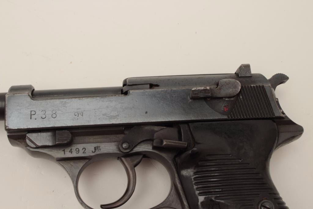 P-38 DA semi-automatic pistol by CYQ, 9mm caliber, 5” barrel, military finish and grips, no magazine, S/N 1492, mismatched, in overall good condition with considerable blue remaining, crisp action and markings, goodbore and grips. (C&R/PPT). Est.: $350-$700.