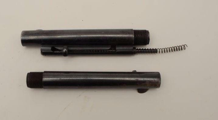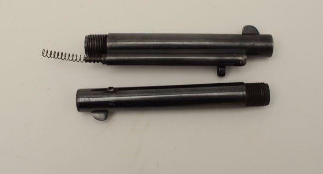 Lot of two first generation Colt SAA barrels including a 5.5” italicized barrel address with ejector housing , rod and spring (barrel is “P” and “A” proofed), in very good to near fine condition and another 5.5” barrelonly, #7939 and “P” and “HN” proofed; in very good condition. Desirable for the Colt U.S. Artillery Model collector. Est.: $200-$300.