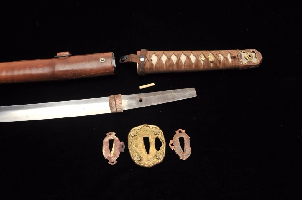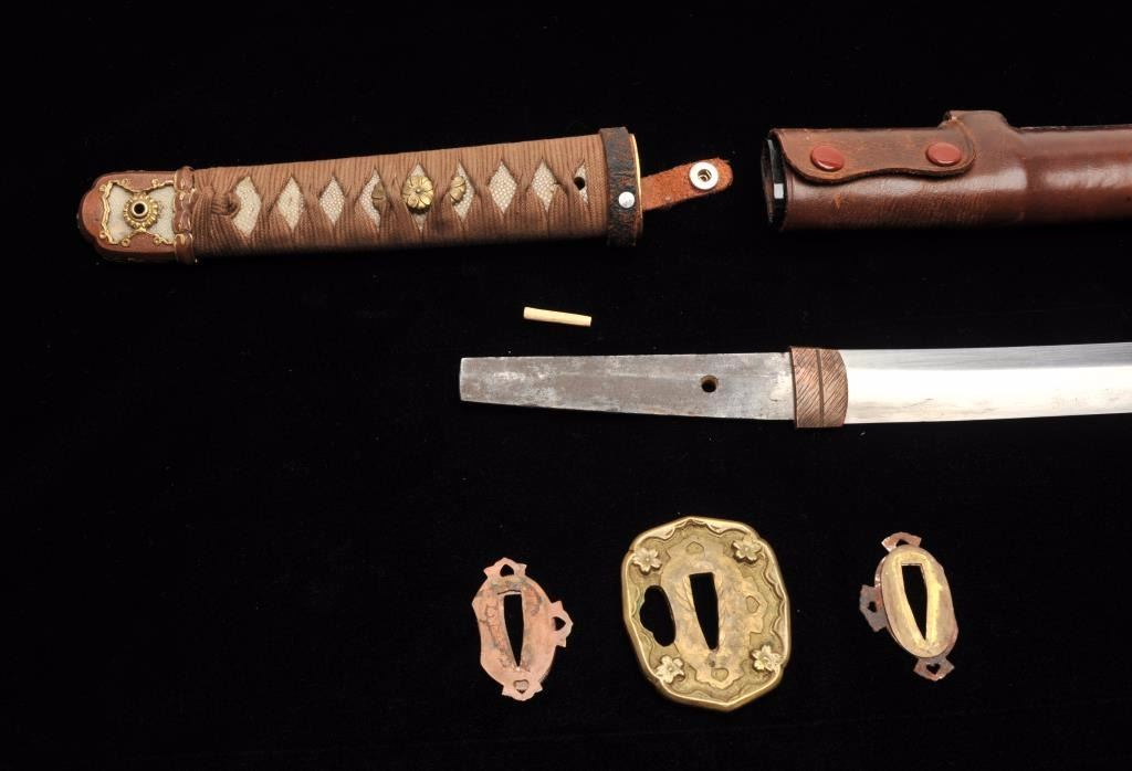 Lot 48 Koto period wakasashi (Medium size) sword in WWII period mountings possibly for a pilot to accompa