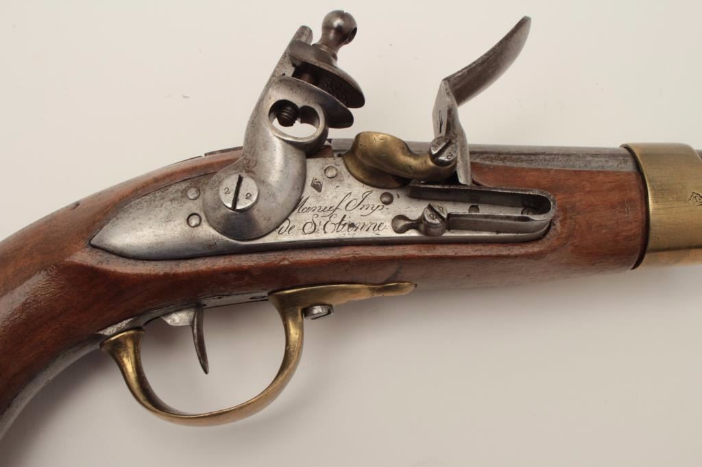 Lot 80 French Napoleonic era flintlock military issue pistol dated 1811 with “Mfg. Imp de St. Etienne” ar