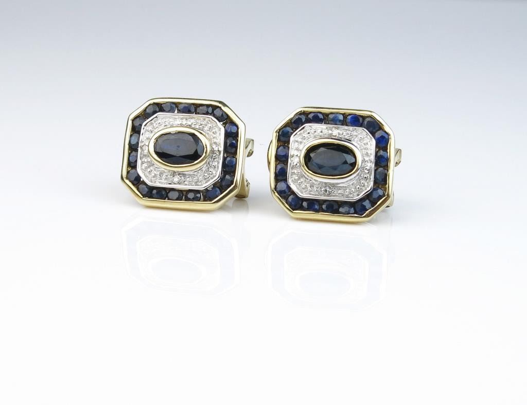 Lot 107 Nice sapphire and diamond earrings with a total combined weight of approx. 2.00 carats set in 14 k
