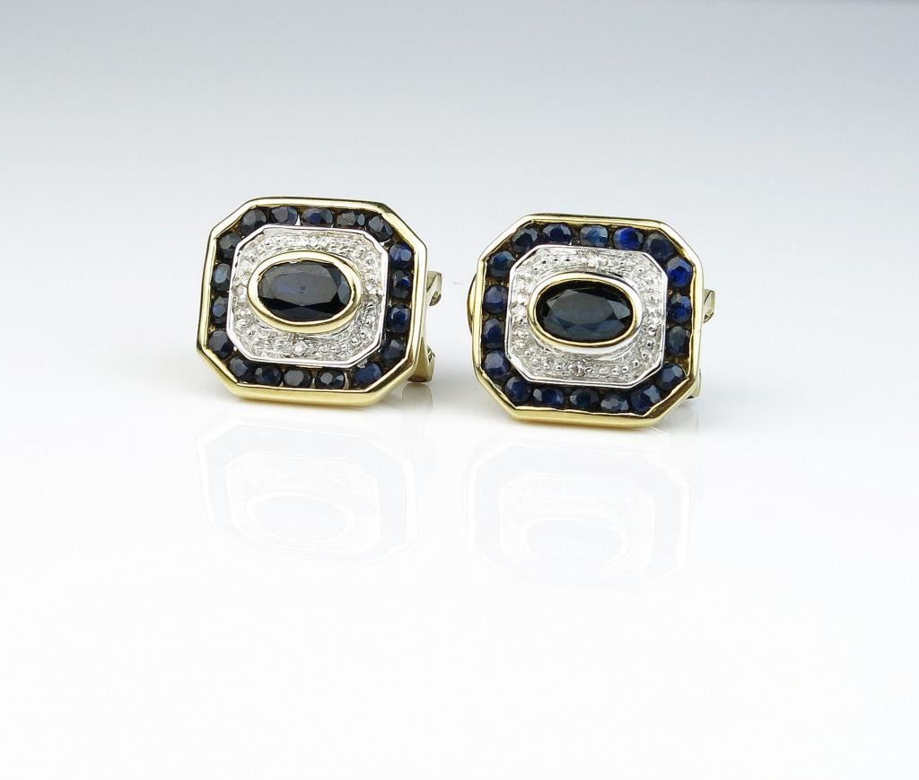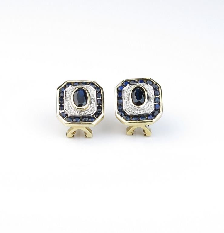 Nice sapphire and diamond earrings with a total combined weight of approx. 2.00 carats set in 14 karat yellow gold setting. Estimates $800-$1,200